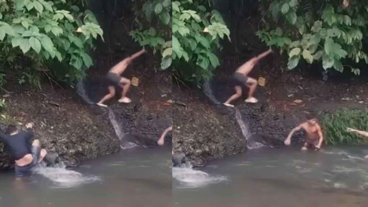 சமூக வலைதளங்களில் ஒவ்வொரு நாளும் ஒவ்வொரு விதமான விஷயங்கள் வைரல் ஆகி வருகிறது. அந்த வகையில் தற்போது வைரலாகி வரும் ஒரு வீடியோவில் மூன்று இளைஞர்கள் ஒரு ஓடையில் அமைதியாக குளிக்கிறார்கள். அதில் ஒருவர் பசுமை மற்றும் அடர்ந்த மரங்களால் சூழப்பட்ட கரைக்கு பக்கத்தில் அமர்ந்திருக்கிறார். திடீரென எங்கிருந்தோ கரையில் அமர்ந்திருந்த அவரின் பின்னால் ஒரு பெரிய பாம்பு ஒன்று வருகிறது.