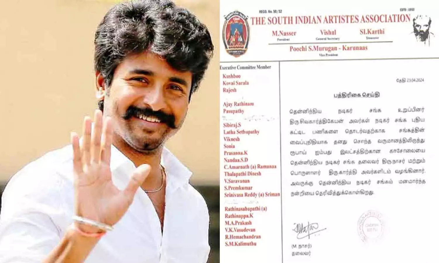 அதைத் தொடர்ந்து விஜய் சூர்யா கார்த்திக் என பல நடிகர்கள் நடிகர் சங்க கட்டத்திற்கு தொடர்ந்து பண உதவி செய்து வருகிறார்கள். நடிகர் நாசர் மற்றும் கார்த்திக் முழு முயற்சியுடன் இதற்கான பணிகளில் ஈடுபட்டு வருகிறார்கள். சமீபத்தில் தான் நடிகர் சிவகார்த்திகேயன் 50 லட்சம் காசோலையை தென்னிந்திய நடிகர் சங்க தலைவர் திரு நாசர் மற்றும் பொருளாளர் கார்த்தியிடம் வழங்கியிருந்தார்.