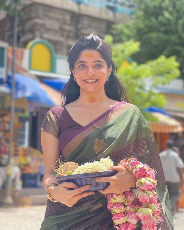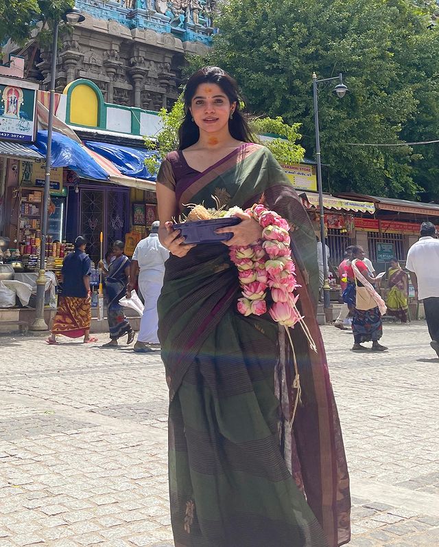 அப்போது எடுக்கப்பட்ட புகைப்படங்களை தனது இன்ஸ்டாகிராம் பக்கத்தில் பதிவு செய்துள்ளார். இப்புகைப்படங்களை பார்த்த ரசிகர்கள் ‘டக்குனு பாத்தா மீனாட்சி அம்மன் மாதிரியே இருக்கீங்களே’ என்று கமெண்ட் செய்து வருகின்றனர்.