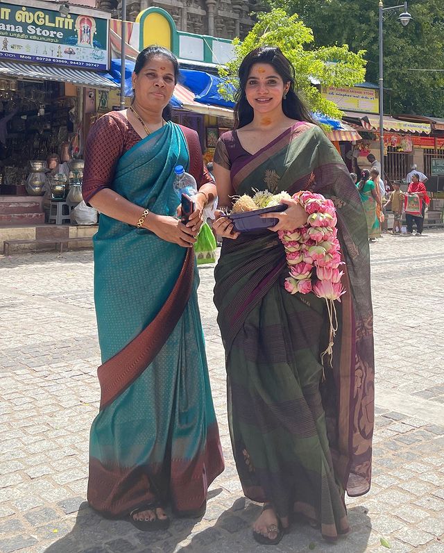 சமூக வலைத்தளங்களில் எப்பொழுதும் ஆக்டிவாக இருக்கக்கூடியவர் நடிகை திவ்யா பாரதி. இவர் தற்பொழுதுஇவர் தற்பொழுது தனது தாயுடன் இணைந்து மீனாட்சி அம்மன் கோவிலுக்கு சாமி தரிசனம் செய்ய சென்றுள்ளார்.