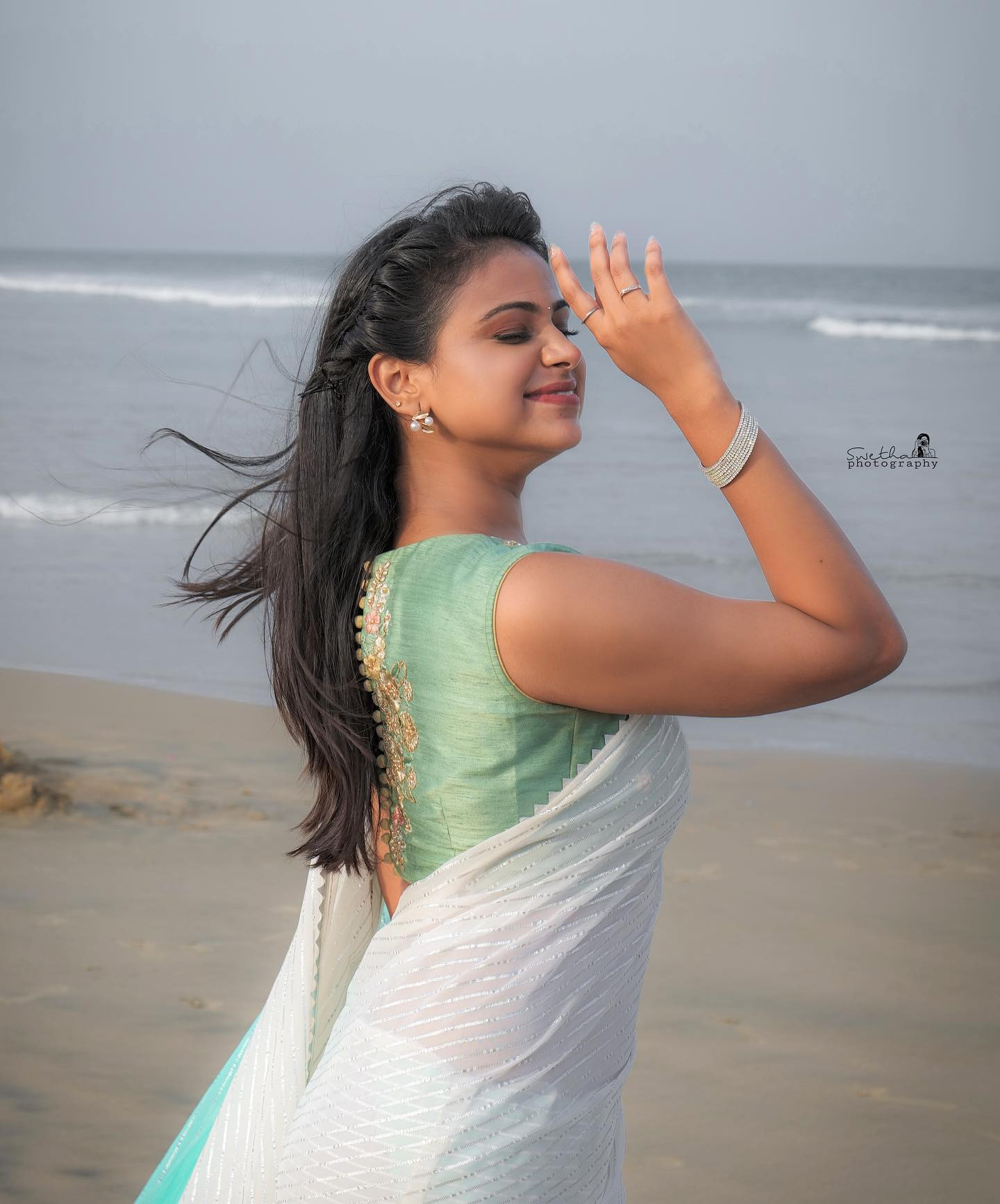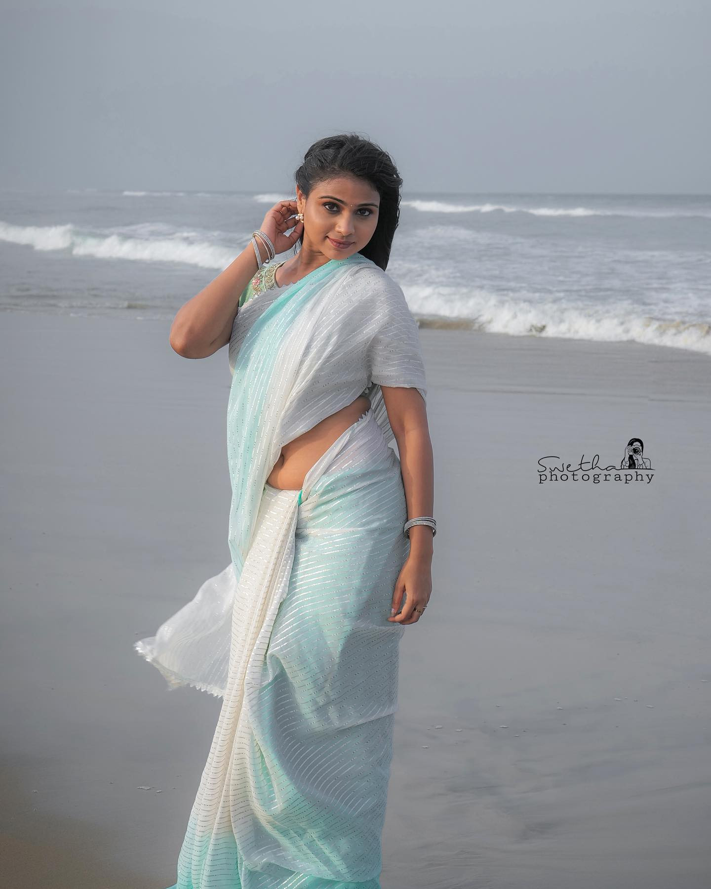 இவர் தற்பொழுது கடற்கரையில் சேலையில் மொத்த அழகையும் காட்டி கிளாமர் போட்டோஷூட் புகைப்படங்களை இணையத்தில் பகிர்ந்துள்ளார். இப்புகைப்படங்கள் ரசிகர்களால் வைரலாக்கப்பட்டு வருகிறது.