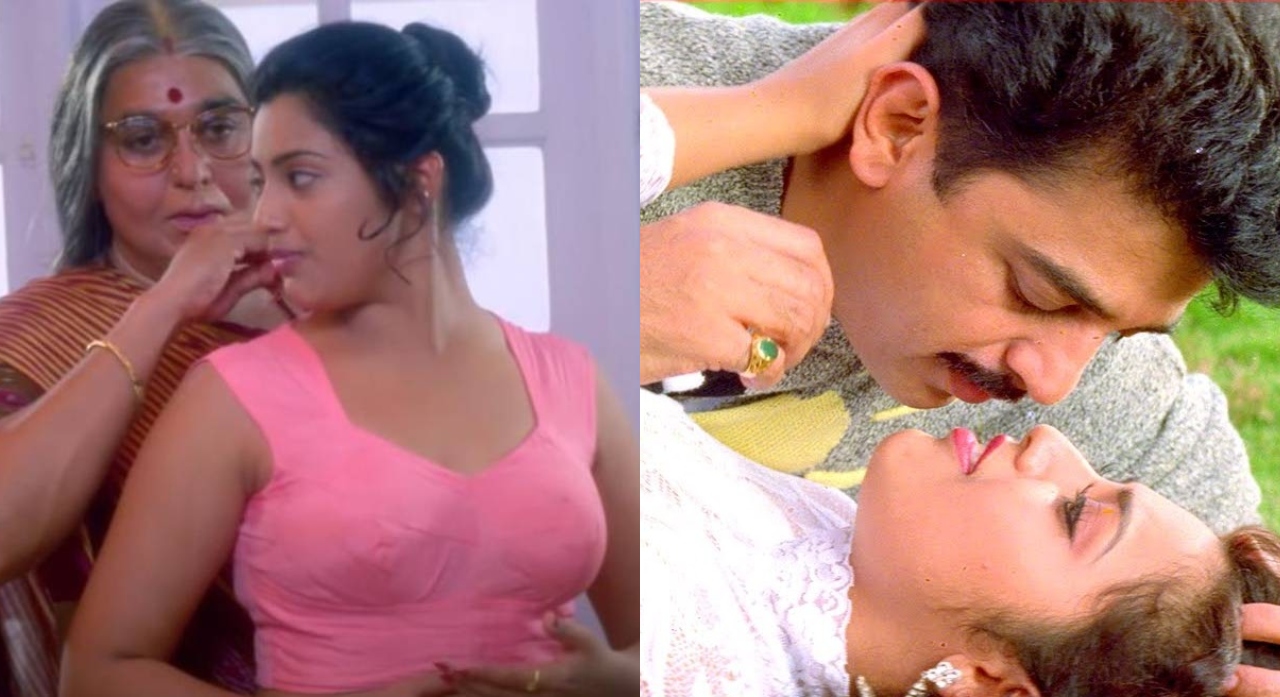 அதனை கேட்டதும் எனக்கு பயமாக இருந்தது. இந்த காட்சியில் நடிப்பதற்கு நான் தயாராக இல்லை என்று இயக்குனரிடம் கூறுமாறு என் அம்மாவிடம் கேட்டேன். என் அம்மாகிட்ட சொல்லிட்டு அழுதுட்டேன். இந்த காட்சியில் என்னால் நடிக்க முடியாது உடம்பெல்லாம் மடங்குது என்று கூறினேன். பிறகு கே எஸ் ரவிக்குமார் வற்புறுத்தியதால் வேறு வழியில்லாமல் பயத்துடன் படபிடிப்பு இடத்திற்கு சென்றேன். ஆனால் அந்த காட்சியை எப்படி எதிர்கொள்வது என்று தெரியாமல் தவித்தேன். அந்த சமயத்தில் கமல்ஹாசன் முத்தம் கொடுப்பது போல நடித்துவிட்டு இப்போது வேண்டாம் என்று கூறி சென்றுவிட்டார். அதன் பிறகு தான் எனக்கு நிம்மதியாக இருந்தது என்று மீனா கூறியுள்ளார்.