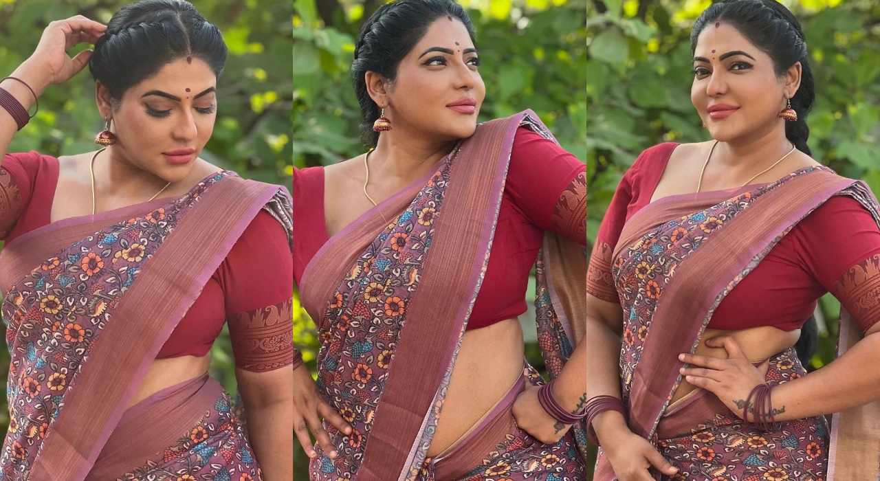இவர் பெரும்பாலும் கிளாமரான போட்டோக்கள் மற்றும் வீடியோக்களை பதிவு செய்து ரசிகர்களை கவர்ந்து வருகிறார். தற்பொழுது இவர் சேலையில் வளைஞ்சு நெளிஞ்சு போஸ் கொடுத்த புகைப்படங்கள் இணையத்தில் ரசிகர்களால் படுவைரலாக்கப்பட்டு வருகிறது.