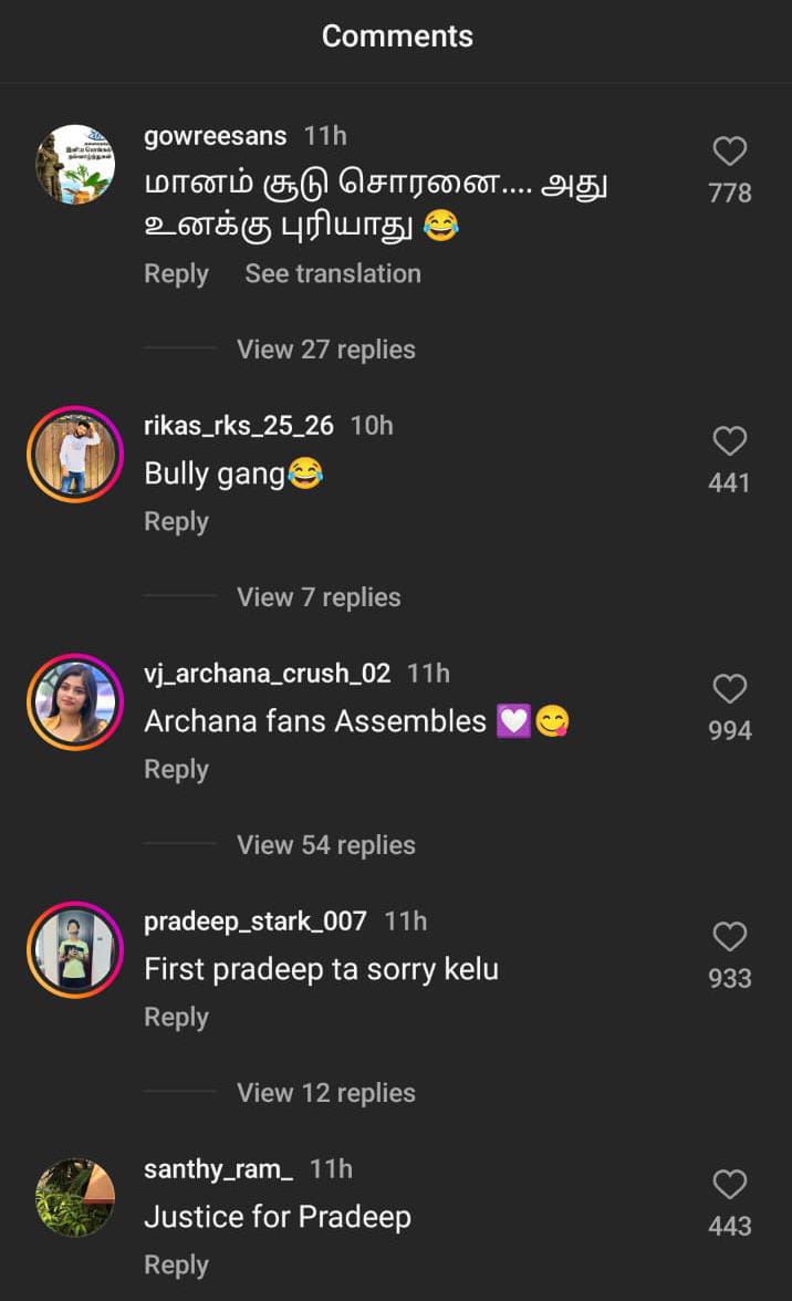இதை தொடர்ந்து மணி இரண்டாவது இடத்தையும், மாயா மூன்றாவது இடத்தையும் பிடித்தார். இந்நிலையில் டைட்டில் கிடைக்காத விரக்தியில் மாயா தனது insta பக்கத்தில் பதிவு ஒன்றை வெளியிட்டுள்ளார். அதில் பூர்ணிமா, ஐசு, அனன்யா உடன் இருக்கும் புகைப்படத்தை பகிர்ந்து ‘கையில் என்ன கொண்டு வந்தோம். கொண்டு செல்ல’ இன்று அவர் கூறியுள்ளார். இப்பதிவினை பார்த்த நெட்டிசன்கள், ‘ ஃபர்ஸ்ட் பிரதீப் கிட்ட சாரி கேளு என்றும், மானம், சூடு, சொரணை அது உனக்கு புரியாது’ என்றும் பலவாறு கமெண்ட் பக்கத்தில் அவரை திட்டி தீர்த்து வருகின்றனர். இதோ அந்த பதிவு…