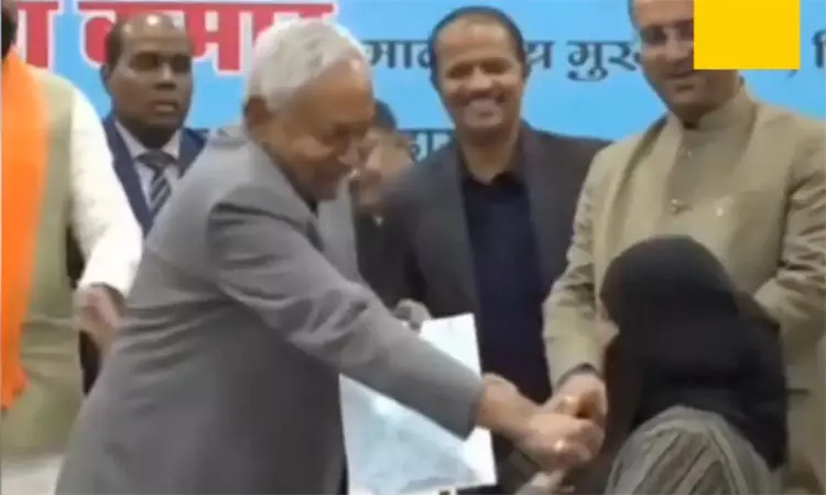 பீகார் தலைநகர் பாட்னாவில் அண்மையில் நடைபெற்ற அரசு விழாவில், இஸ்லாமிய பெண் மருத்துவர் ஒருவரின் ஹிஜாபை அம்மாநில முதல்வர் நிதிஷ் குமார் பலவந்தமாக விலக்க முயன்ற சம்பவம் நாடு முழுவதும் பெரும் அதிர்வலைகளை ஏற்படுத்தியுள்ளது.