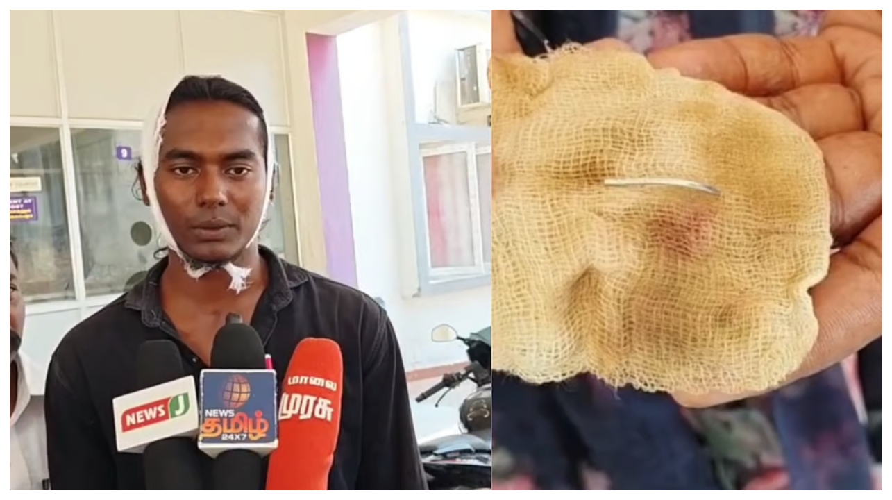 வேலூர் மாவட்டம் பேரணாம்பட்டு அரசு மருத்துவமனையில் சிகிச்சைக்காக வந்த வாலிபரின் தலையில் தையல் ஊசி உடைந்த நிலையிலேயே தையல் போடப்பட்ட அதிர்ச்சி சம்பவம் அரங்கேறியுள்ளது. கொத்தபல்லி கிராமத்தைச் சேர்ந்த கூலித் தொழிலாளியான தனுஷ் என்பவர், தென்னை மரத்தில் தேங்காய் பறிக்கும்போது ஏற்பட்ட காயத்திற்காக இம்மருத்துவமனைக்குச் சென்றுள்ளார்.