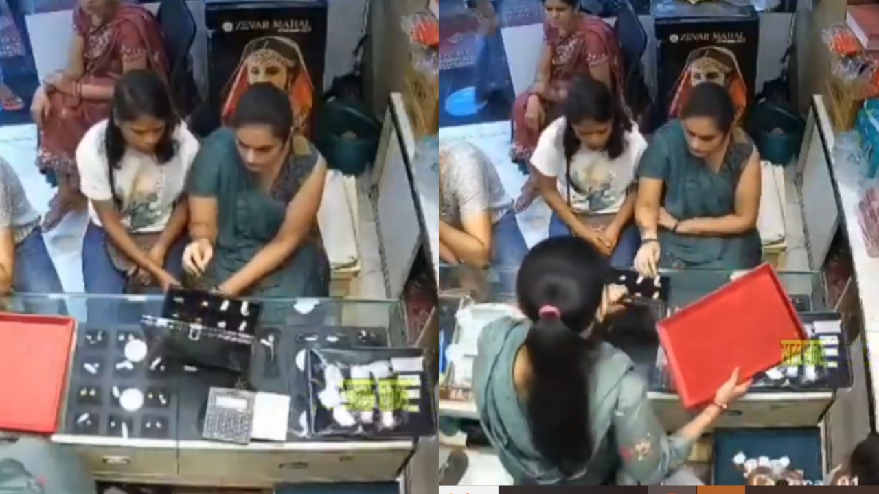 நகைக் கடைகளில் தங்க ஆபரணங்கள் திருடப்பட்ட சம்பவங்கள் பலவற்றை நாம் பார்த்திருக்கிறோம், ஆனால் இந்த முறை ஒரு புதிய தந்திரம் வெளிச்சத்திற்கு வந்துள்ளது, இது அனைவரையும் அதிர்ச்சிக்குள்ளாக்குகிறது. டெல்லியின் லட்சுமி நகரில் அமைந்துள்ள ஒரு நகைக் கடையில் இருந்து எடுக்கப்பட்ட சிசிடிவி காட்சிகள் இணையத்தில் வைரலாகி வருகின்றன. அந்த வீடியோவில், இரண்டு பெண்கள் மிகவும் புத்திசாலித்தனமாக திருடுவதைக் காணலாம்.
