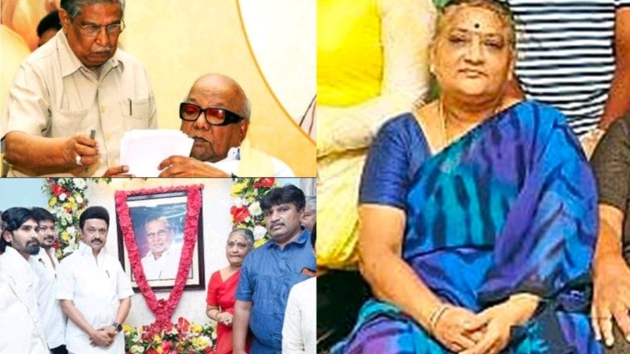 மறைந்த முன்னாள் முதல்வர் கருணாநிதியின் உதவியாளர் சண்முகநாதனின் மனைவி யோகம் இன்று காலமானார். சென்னை தேனாம்பேட்டை இல்லத்தில் உள்ள அவருடைய உடலுக்கு அஞ்சலி செலுத்த முதல்வர் ஸ்டாலின் நேரில் விரைகிறார். சண்முகநாதன் கடந்த 2021 ஆம் ஆண்டு காலமான நிலையில் அவருடைய மனைவியும் இன்று இயற்கை எய்தினார். 1969 ஆம் ஆண்டு முதல் கருணாநிதி மறைவு வரை சுமார் 48 ஆண்டுகள் அவருடனையே அவரது நிழலாக சண்முகநாதன் வளம் வந்தது குறிப்பிடத்தக்கது. தற்போது அவருடைய மனைவியின் மறைவுக்கு அரசியல் தலைவர்கள் பலரும் இரங்கல் தெரிவித்து வருகிறார்கள்.