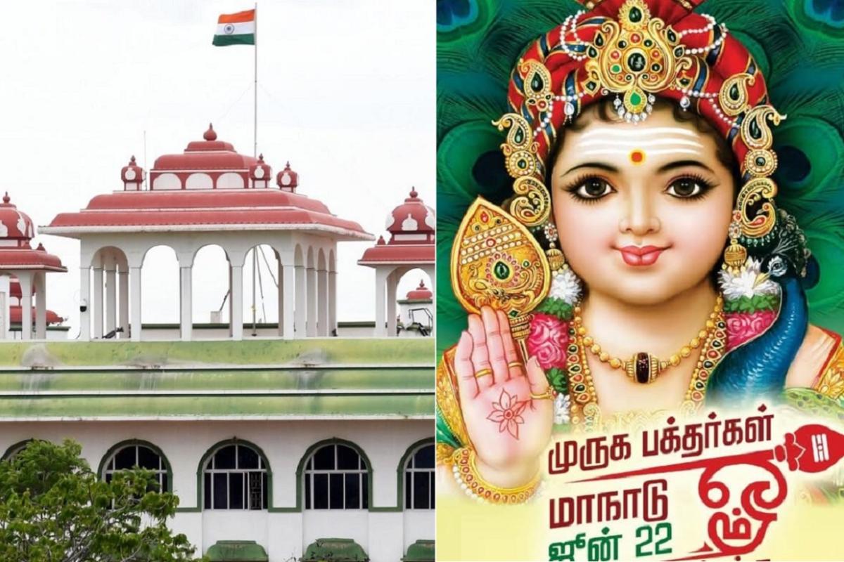 மதுரை முருக பக்தர்கள மாநாட்டுக்கு நிபந்தனைகளுடன் அனுமதி அளித்த மதுரை உயர்நீதிமன்றக் கிளையின் முழு உத்தரவு நகல் வெளியானது. அதன்படி மதுரை பாண்டி கோயில் அருகே அம்மா திடலில் இந்து முன்னணி நடத்தவுள்ள முருக பக்தர்கள் மாநாட்டுக்கு 52 நிபந்தனைகளுடன் அனுமதி. மத அமைப்புகளை அரசியலுக்கு பயன்படுத்தினால் நடவடிக்கை எடுக்கப்படும்.