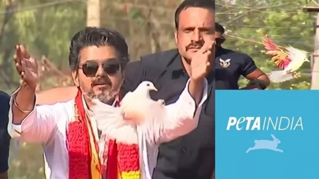 தமிழக வெற்றிக் கழகத்தின் தலைவரும், நடிகருமான விஜய் தனது தேர்தல் பிரசாரத்தின்போது கட்சி வண்ணங்கள் பூசப்பட்ட புறாக்களைப் பறக்கவிட்டது தற்போது பெரும் விவாதத்தைக் கிளப்பியுள்ளது. தவெக கட்சியின் கொடி நிறத்தை ஒத்த சாயங்களை புறாக்களின் உடலில் பூசி, அவற்றை மேடையில் இருந்து பறக்கவிட்ட செயலுக்கு விலங்கு நல அமைப்பான ‘பீட்டா இந்தியா’ (PETA India) கடும் கண்டனம் தெரிவித்துள்ளது. இது தொடர்பாக விஜய்க்கு கடிதம் எழுதியுள்ள அந்த அமைப்பு, அரசியல் லாபத்திற்காகவோ அல்லது விளம்பரத்திற்காகவோ வாயில்லாப் பிராணிகளைப் பயன்படுத்துவது முற்றிலும் தவிர்க்கப்பட வேண்டும் என்று வலியுறுத்தியுள்ளது.