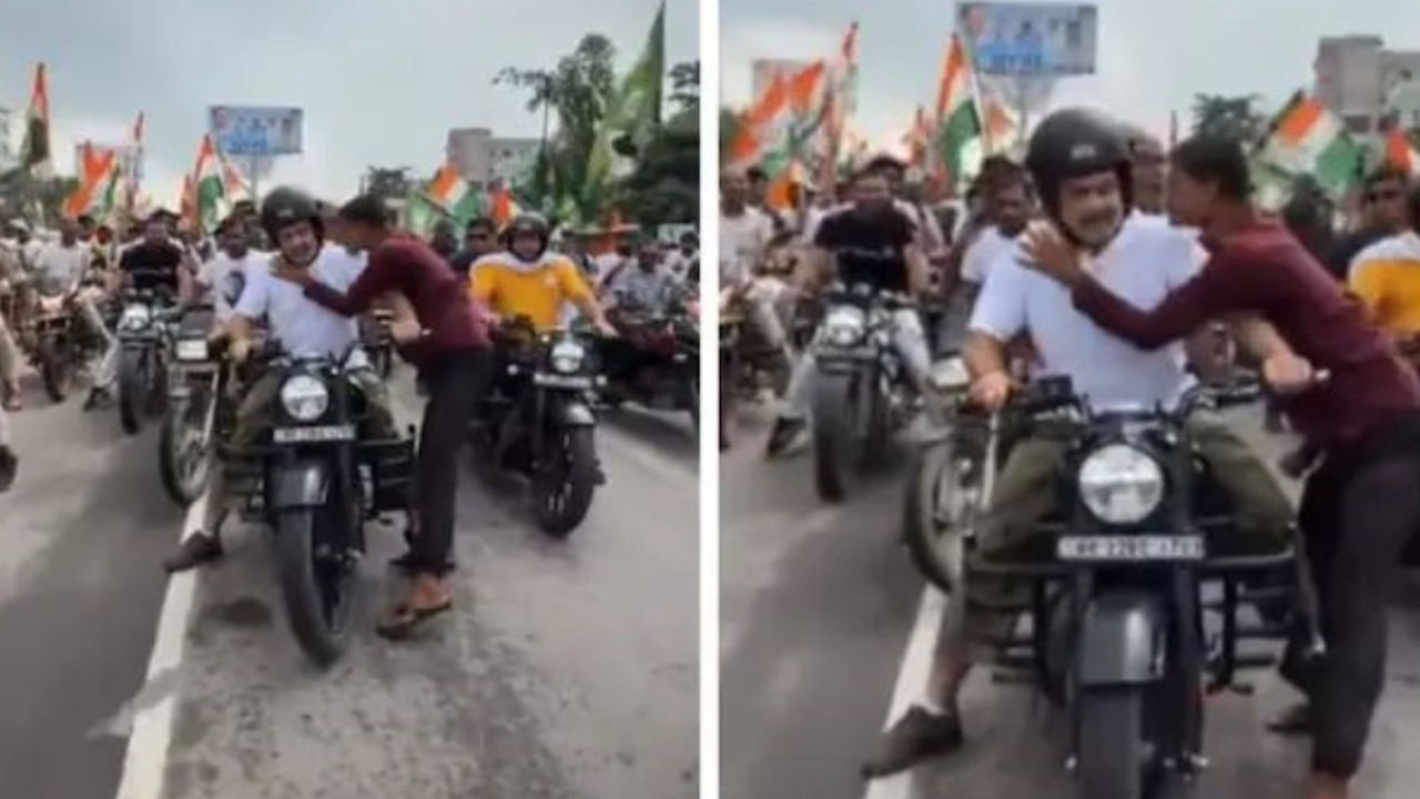 பொதுவாகவே அரசியல் தலைவர்களுக்கு பாதுகாப்பு என்பது மிக முக்கியமாகும். ஆனால் சில நேரங்களில் பாதுகாப்பை மீறி சில சம்பவங்கள் நடந்து விடுகின்றன. அதன்படி பீகார் மாநிலம் பூர்ணியா – அராரியா சாலையில் நடைபெற்ற வாக்காளர் அதிகார யாத்திரையில் நேற்று ராகுல் காந்தி மோட்டார் சைக்கிள் பேரணியில் பங்கேற்றார். அவருடன் பலரும் பங்கேற்ற நிலையில் பேரணியின் போது பாதுகாப்பு வளையத்தை உடைத்து ஓடி வந்த நபர் ஒருவர் திடீரென்று ராகுல் காந்தியின் கழுத்தை பிடித்து அவருடைய தோளில் முத்தமிட முயன்றார். உடனே பாதுகாப்பு பணியாளர்கள் அவரை அப்புறப்படுத்தினர்.