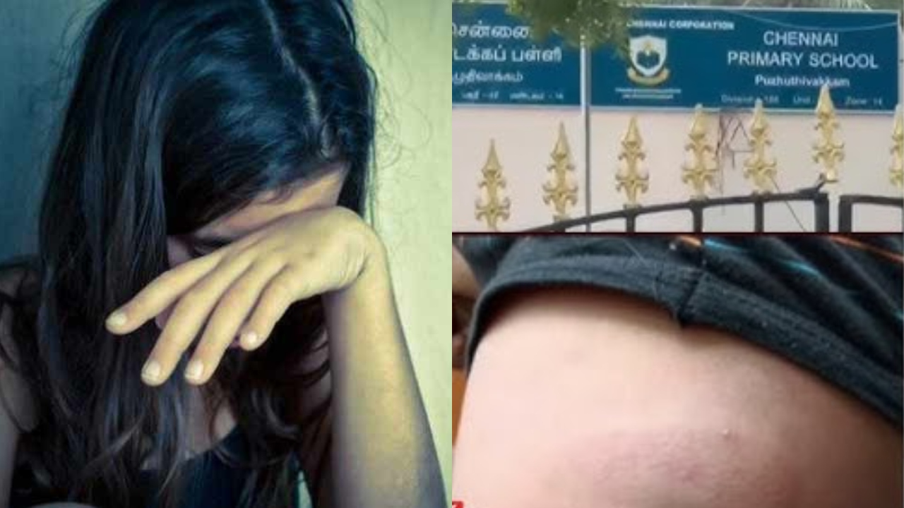 சென்னை புழுதிவாக்கம் பகுதியில் செயல்பட்டு வரும் மாநகராட்சி பள்ளி ஒன்றில் ஐந்தாம் வகுப்பு படித்து வரும் 11 வயது சிறுமியை வகுப்பறையில் பேனாவின் மையை கீழே கொட்டியதாக கூறி பல்லி தலைமை ஆசிரியை இந்திரா காந்தி கடுமையாக தாக்கியுள்ளார். தரையை துடைப்பதற்கு பயன்படுத்தப்படும் மாப் குச்சியை வைத்து சிறுமியை கடுமையாக தாக்கியுள்ளார். இதனால் சிறுமி அலறி துடித்த நிலையில் கை மற்றும் கால்களில் வீக்கம் ஏற்பட்டுள்ளது. இதனைத் தொடர்ந்து வீட்டுக்கு சென்ற சிறுமி தன் பெற்றோரிடம் இது குறித்து கூறிய நிலையில் சிறுமியின் உடலில் இருக்கும் வீக்கத்தை கண்டு பெற்றோர் பதறி துடித்தனர்.