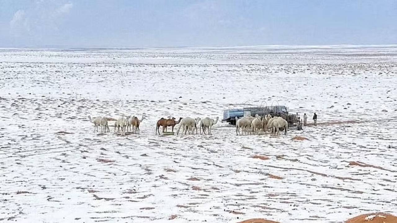 இது தவிர, ஹெயில் பிராந்தியம் மற்றும் அதன் சுற்றுவட்டாரப் பகுதிகளிலும் பனிப்பொழிவு பதிவாகியுள்ளது. பாலைவன தேசமான சவுதியில் இத்தகைய வானிலை மாற்றம் மிகவும் அரிதான ஒன்றாகக் கருதப்படுகிறது. பல இடங்களில் அதிகாலை வெப்பநிலை 0°C க்கும் கீழே சரிந்தது, இதனால் பனி உயரமான மேற்பரப்புகளிலும் திறந்தவெளி நிலப்பரப்பிலும் படிய அனுமதித்தது. வானிலை அதிகாரிகளின் கூற்றுப்படி, மத்திய மற்றும் வடக்கு சவுதி அரேபியாவில் வலுவான குளிர் காற்று நிறை தள்ளப்பட்டதால் இந்த உறைபனி நிலைமைகள் ஏற்பட்டன.