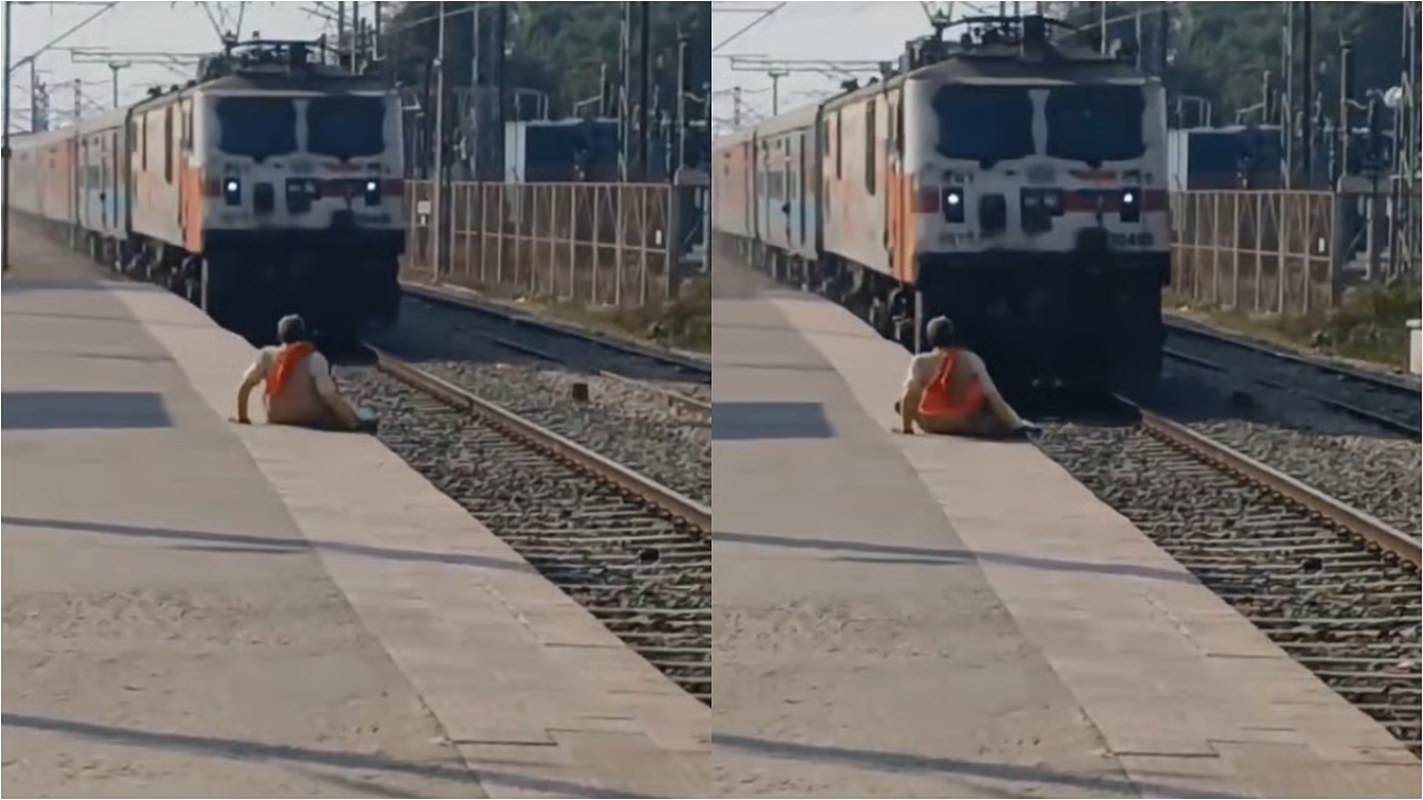 தாத்தாவுக்கு தில்ல பாத்தியா..? ரயில் பாதையில் அமர்ந்திருந்த முதியவர்… நூலிழையில் உயிர் தப்பிய திக் திக் காட்சி..!!