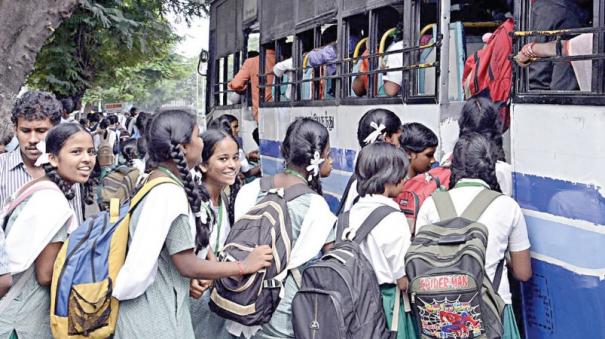 தமிழ்நாட்டில் 1 முதல் 12ஆம் வகுப்பு வரை படிக்கும் மாணவர்கள் பள்ளிக்கு சென்று வருவதற்கு ஏதுவாக இலவச பஸ் பாஸ்...