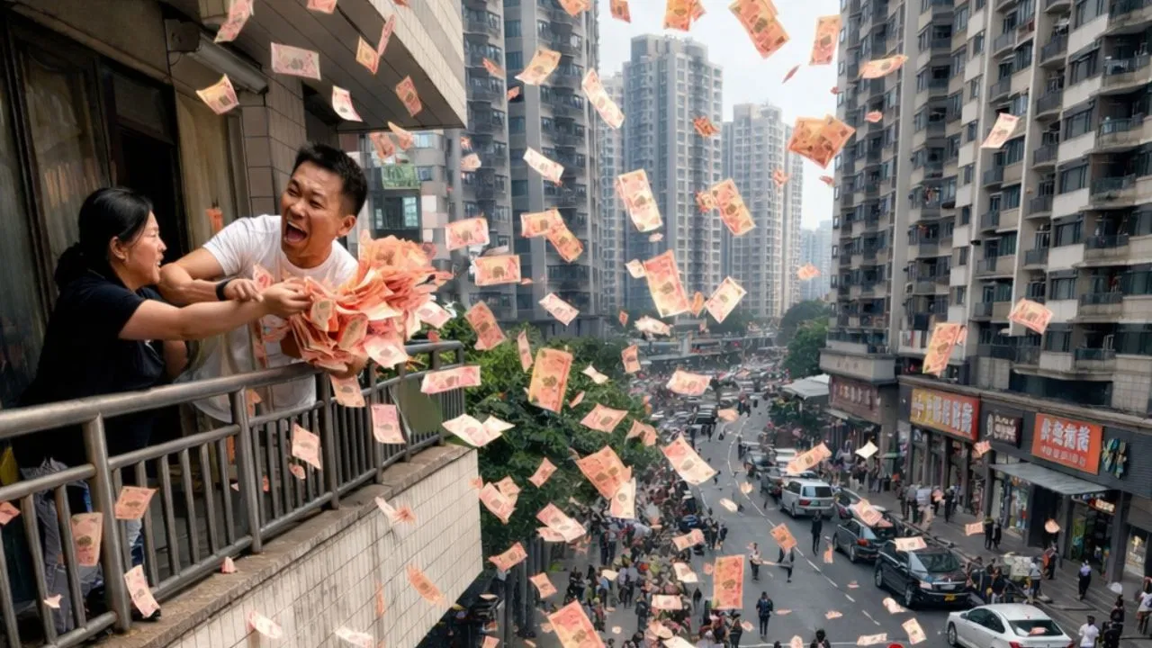 சீனாவின் லியாவோனிங் மாகாணத்தில் உள்ள ஒரு அடுக்குமாடி குடியிருப்பில் வசிக்கும் தம்பதியினரிடையே கடும் வாக்குவாதம் ஏற்பட்டுள்ளது. கோபத்தின் உச்சத்துக்கே சென்ற கணவன், வீட்டில் சேர்த்து வைத்திருந்த பணத்தை எடுத்து பால்கனி வழியாக தெருவில் வீசத் தொடங்கினார். சுமார் 25,00,000 ரூபாய் (2,10,000 யுவான்) மதிப்பிலான நோட்டுகள் வானத்திலிருந்து மழை போல கீழே கொட்டியது அங்கிருந்தவர்களை வியப்பில் ஆழ்த்தியது.