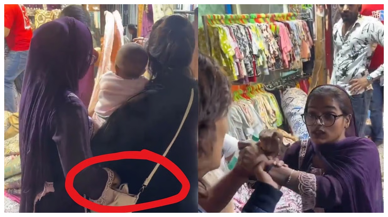 🚨 DELHI: Girl tries stealing woman’s purse at Jama Masjid. Man recording video grabs her instantly!