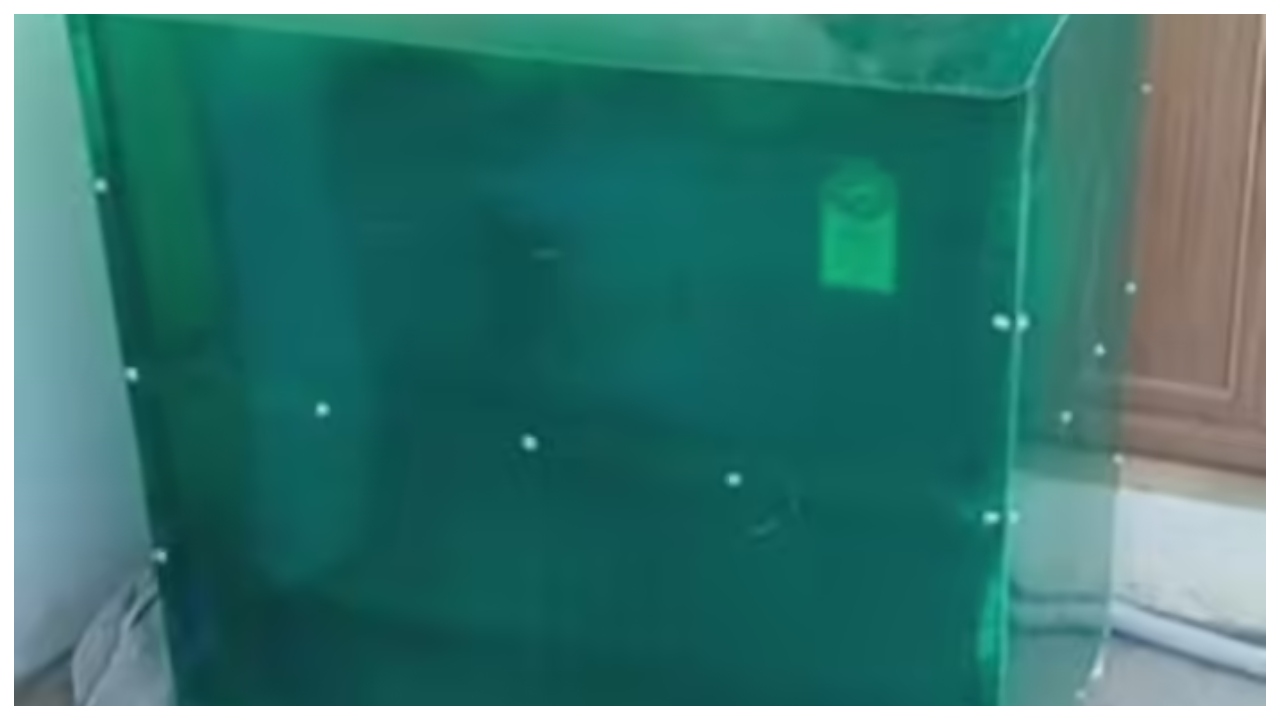 வெயிலினால் சலவை இயந்திரங்களின் வெளிப்புறப் பகுதியும், குறிப்பாக முன்பக்கக் கண்ணாடி கொண்ட தானியங்கி இயந்திரங்களும் சேதமடைவதைத் தடுக்க இந்த புதிய வகை உறைகள் அறிமுகப்படுத்தப்பட்டுள்ளன. சாதாரண துணி உறைகள் தூசியிலிருந்து மட்டுமே பாதுகாப்பு அளிக்கும் நிலையில், @welding__wala63 எனும் இன்ஸ்டாகிராம் பக்கத்தில் பகிரப்பட்ட இந்த உறை, இரும்புக் கம்பிகளால் ஆன சதுர வடிவக் கட்டமைப்பைக் கொண்டுள்ளது. இதன் மேல்புறம் பச்சை நிற அக்ரிலிக் அல்லது பிளாஸ்டிக் தாள்களால் மூடப்பட்டு, இயந்திரத்தைச் சூரிய ஒளியின் நேரடித் தாக்கத்திலிருந்து முழுமையாகப் பாதுகாக்கும் வகையில் வடிவமைக்கப்பட்டுள்ளது.