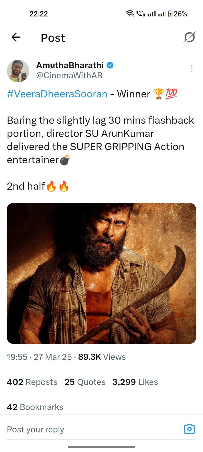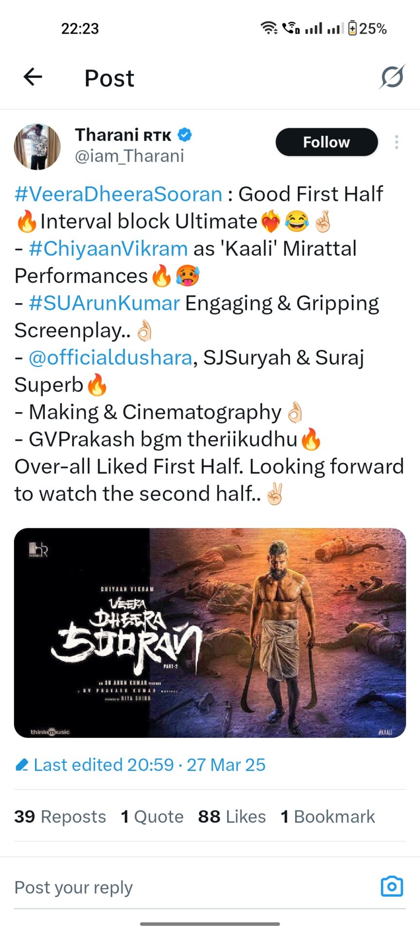 லேட்டா வந்தாலும் தரமான சம்பவம் பண்ண சியான் விக்ரம்.. வீர தீர சூரன் படத்தின் அனல் பறக்கும் ட்விட்டர் விமர்சனம்..!