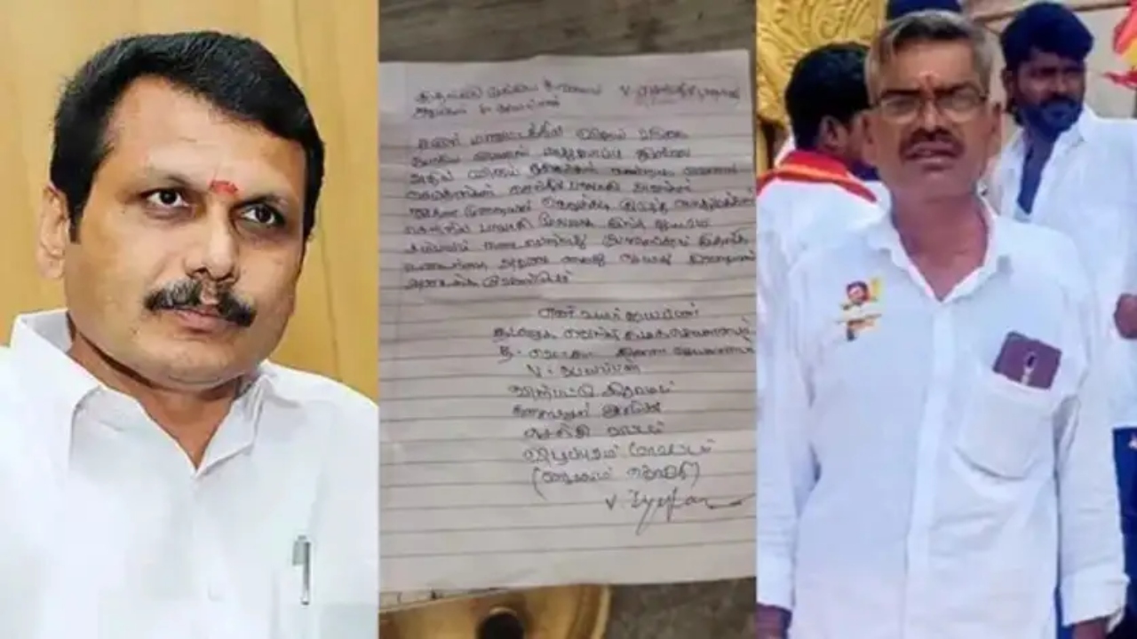 இந்நிலையில் கரூர் துயர சம்பவத்திற்கு திமுகவை சேர்ந்த முன்னாள் அமைச்சர் ஒருவர்தான் காரணம் என்று கடிதம் எழுதி வைத்துவிட்டு தமிழக வெற்றிக்கழகம் நிர்வாகி தூக்கிட்டு தற்கொலை செய்து கொண்ட சம்பவம் அதிர்ச்சியை ஏற்படுத்தியுள்ளது. விழுப்புரம் மாவட்ட வல்லம் ஒன்றியத்திற்கு உட்பட்ட விற்பட்டு கிளை செயலாளரான ஐயப்பன் இந்த விபரீத முடிவை எடுத்துள்ளதாக தெரிகிறது. ஐயப்பனின் உடல் மற்றும் கடிதத்தை கைப்பற்றிய போலீசார் விசாரணை நடத்தி வரும் நிலையில் இந்த சம்பவம் பரபரப்பை கிளப்பியுள்ளது.