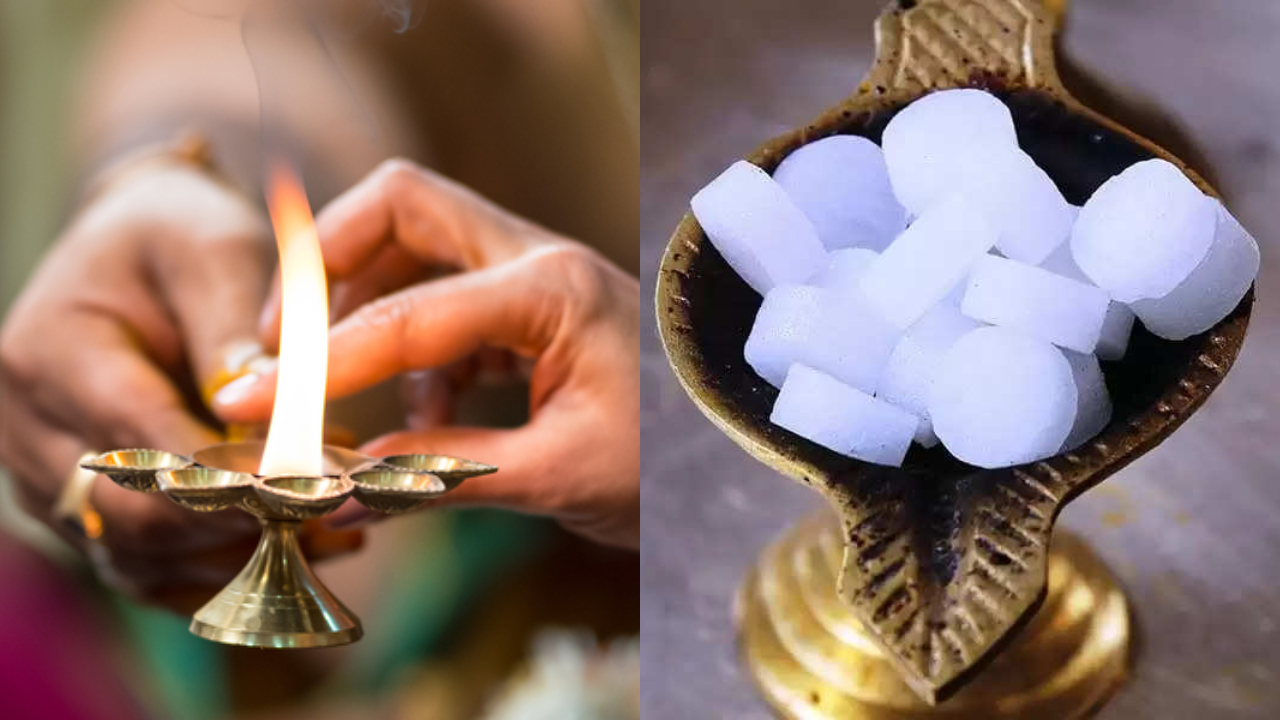 சமையலறையில் கற்பூரத் துண்டுகளை வைப்பது லட்சுமி தேவியை மகிழ்விக்கும். இதனால் நமக்கு உணவு மற்றும் தனம் தானியத்தை குறைவில்லாமல் வைத்துக் கொள்ளும். வாசலில் கற்பூரம் கொளுத்தும் போது அது கண் திருஷ்டி விலகி கெட்ட சக்திகளை வெளியேற்றும். எந்த ஒரு வழிபாடு செய்தாலும் கற்பூரம் காட்டாமல் நிறைவு செய்யக் கூடாது என்பதை நினைவில் கொள்ளுங்கள்.